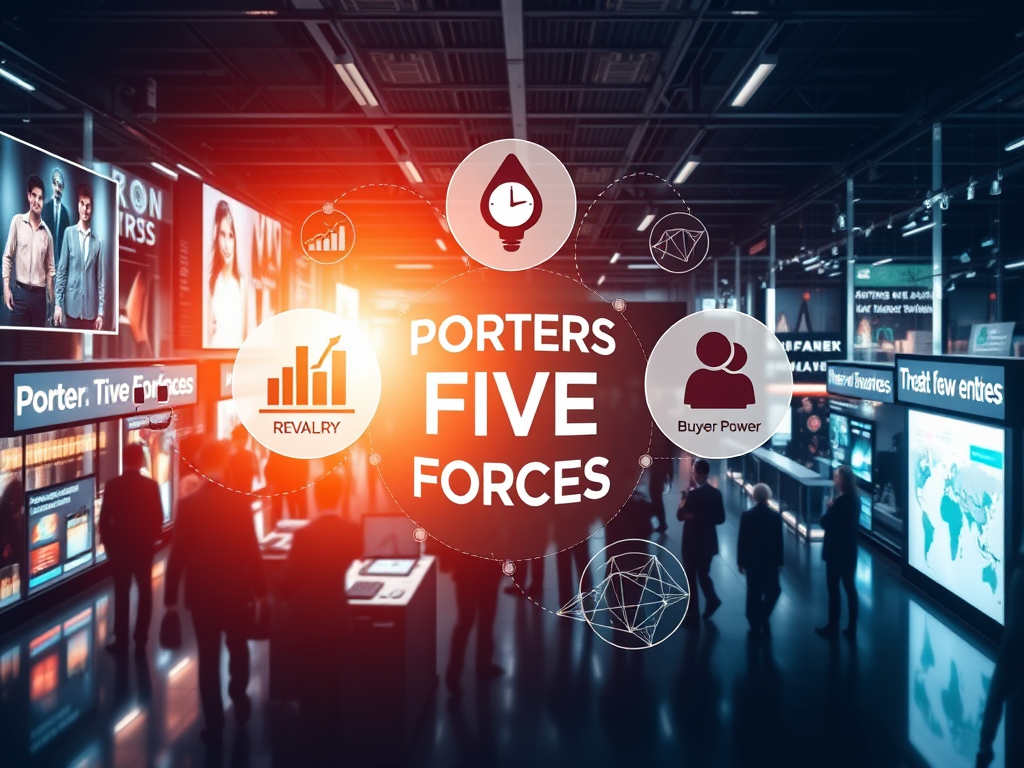 Das Porters Five Forces Modell analysiert fünf wichtige Wettbewerbskräfte einer Branche. Michael Porter entwickelte dieses Framework zur strategischen Bewertung von Marktumfeldern und Gewinnpotenzialen.